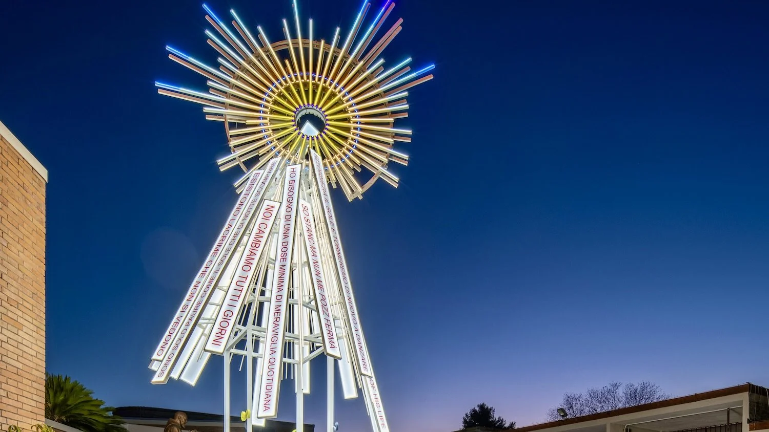 Studio Light Mariano ha realizzato nel 2024 a Roma l’Albero Rebibbia, un’installazione di arte pubblica luminosa alta 6 metri firmata Marinella Senatore.